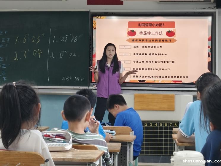 随后的时间管理小课堂中的拼图游戏让学生们切实体会到“全局观”的重要性;寻找纸牌A的游戏引导同学们明白按顺序做事能够节省时间;用装罐子实验类比事务优先级,将学习等核心任务比作“高尔夫球”,琐碎事项喻为“沙子”,引导学生按重要程度分配时间,孩子们也在老师的带领下学习了“四象限法则”“每日计划制定”“番茄钟工作法”三大时间管理技巧。