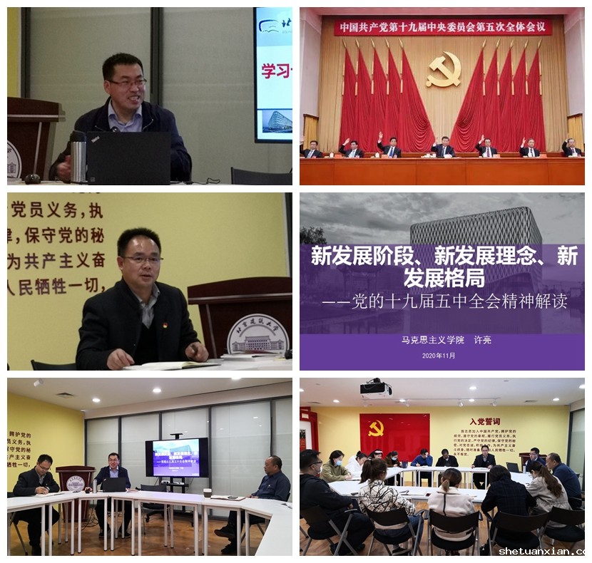 专题党课上,理论导师许亮以《新发展阶段、新发展理念、新发展格局——党的十九届五中全会精神解读》为题,分别从党的十九届五中全会胜利召开及其重要意义、《中共中央关于制定国民经济和社会发展第十四个五年规划和二〇三五年远景目标的建议》的主要内容、进入新发展阶段,贯彻新发展理念,构建新发展格局,三个主要方面详细解读五中全会精神的内涵要求。全会充分肯定党的十九届四中全会以来党和国家各项事业取得新的重大成就。面对错综复杂的国际形势、艰巨繁重的国内改革发展稳定任务特别是新冠肺炎疫情严重冲击,以习近平同志为核心的党中央不忘初心、牢记使命,团结带领全党全国各族人民砥砺前行、开拓创新,奋发有为推进党和国家各项事业,战胜各种风险挑战,中国特色社会主义的航船继续乘风破浪、坚毅前行。高度评价决胜全面建成小康社会取得的决定性成就。分析了我国发展环境面临的深刻复杂变化,提出了“十四五”时期经济社会发展指导思想和必须遵循的原则,明确“十四五”时期经济社会发展的基本思路、主要目标以及2035年远景目标。许亮还传达了北京市委书记蔡奇作的党的十九届五中全会精神宣讲报告主要精神,蔡奇强调,要切实抓好五中全会精神的学习宣传贯彻工作,将学习贯彻五中全会精神与抓好当前各项工作有机结合起来,抓好年末工作。许亮还就“十四五”时期经济社会发展的远景目标、主要内容,以及新的发展阶段、发展理念、发展格局等方面进行了详细解读。