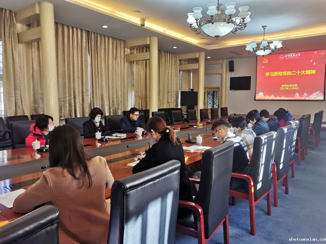 陈红兵领学了中国共产党第二十次全国代表大会报告、习近平总书记在二十届中共中央政治局常委同中外记者见面时和在瞻仰延安革命纪念地时的讲话精神。他强调,每名党员干部都要切实把思想和行动统一到党的二十大精神上来,要紧密结合工作实际,理清工作思路,制定工作举措,推动工作发展,抓好年度各项工作的落实收尾,筹划好、谋划好明年的工作开局,切实把党的二十大精神和党中央的决策部署转化为全心全意为师生服务、推动教学管理高质量发展的生动实践和扎实成效。