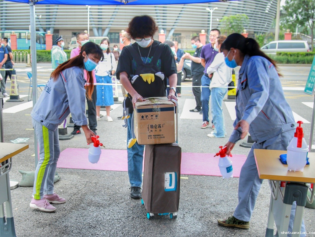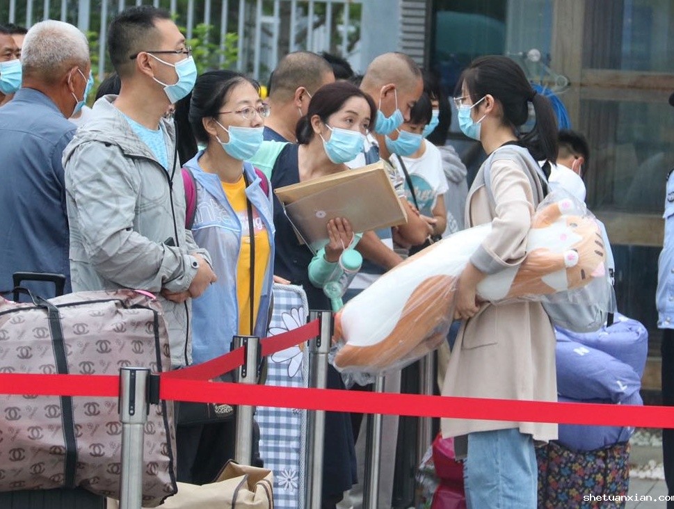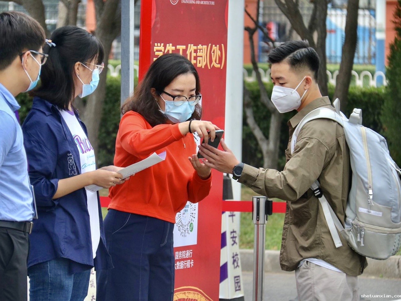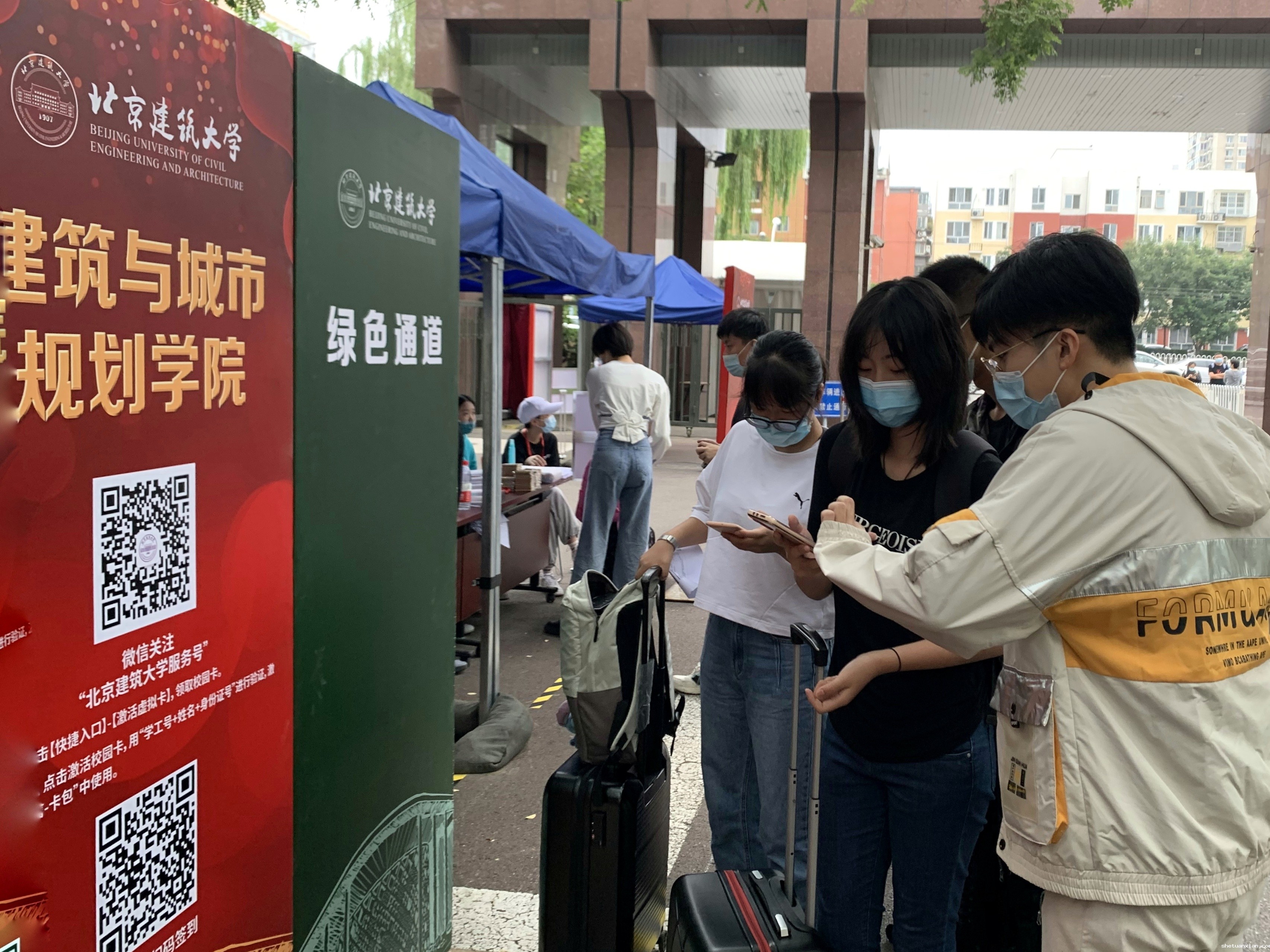 迎新工作在大兴校区和西城校区同时拉开帷幕。清晨,热闹喜庆的南门外新生们按照一米线排起了长队,然后依次经过行李消杀、体温检查、健康码查验、核酸检测报告查验、身份核实等环节进入学校,精细做好服务保障。