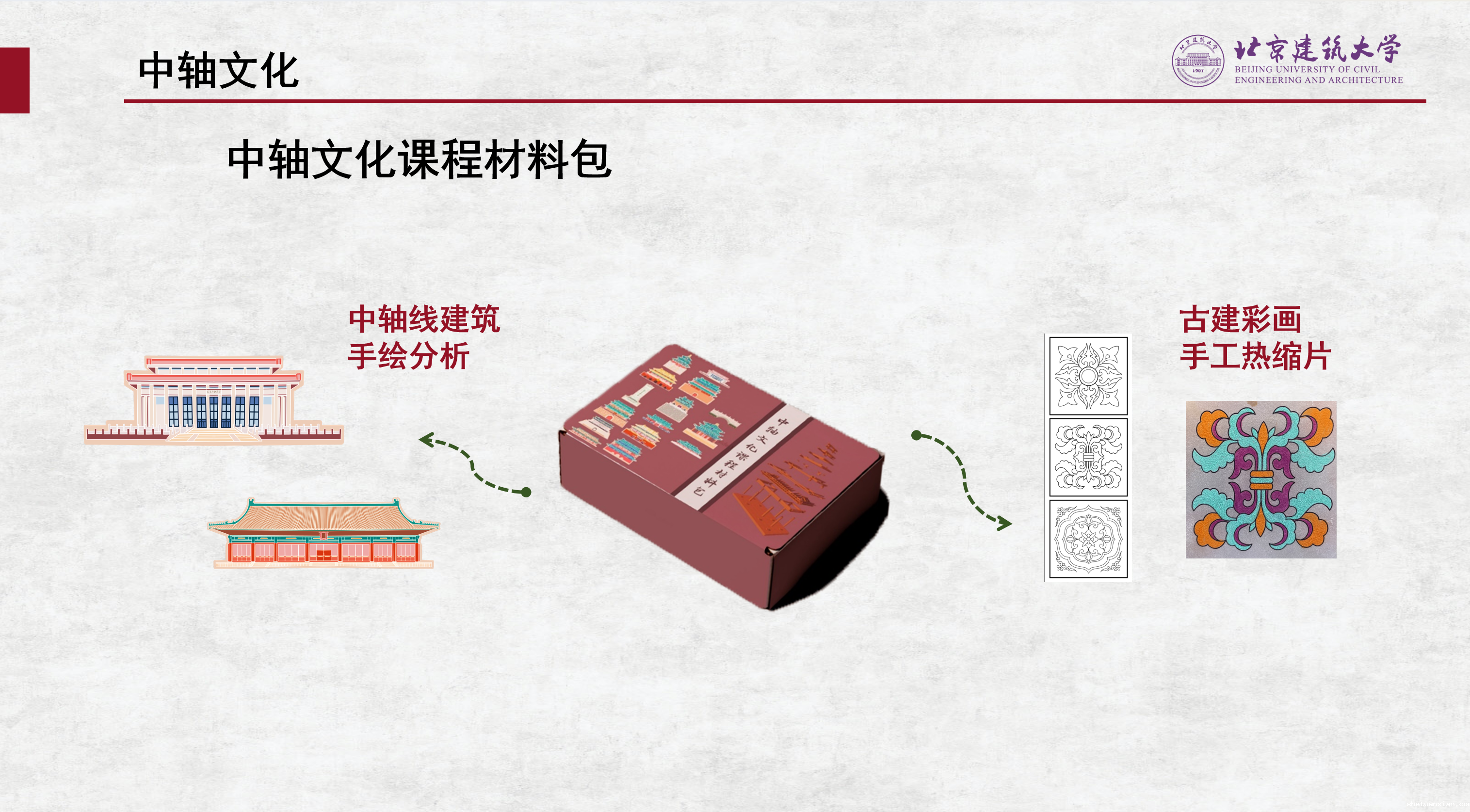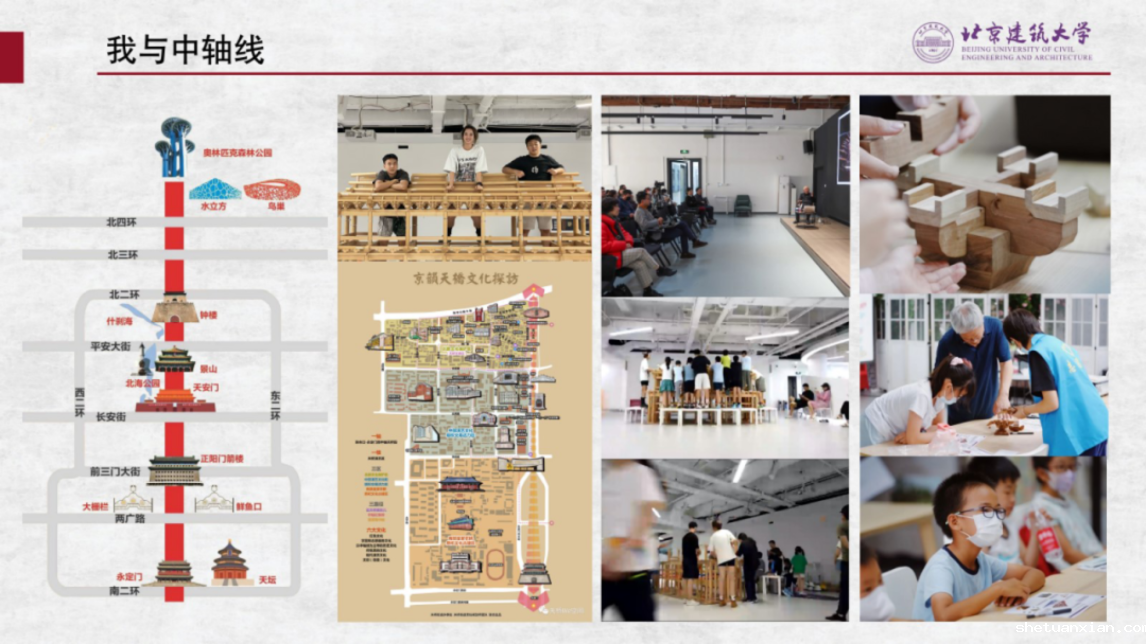 此外,我还加入了中轴文化团队,致力于北京中轴线的宣传,希望更多的人认识了解北京中轴线文化,参与到北京中轴线文化遗产保护中来。主要围绕三个方面开展建设,基于三个方面自主研发相关产品,并运用到实际科普课程中。