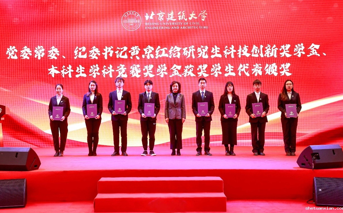 纪委书记黄京红给研究生科技创新奖学金、本科生学科竞赛奖学金获奖学生代表颁奖