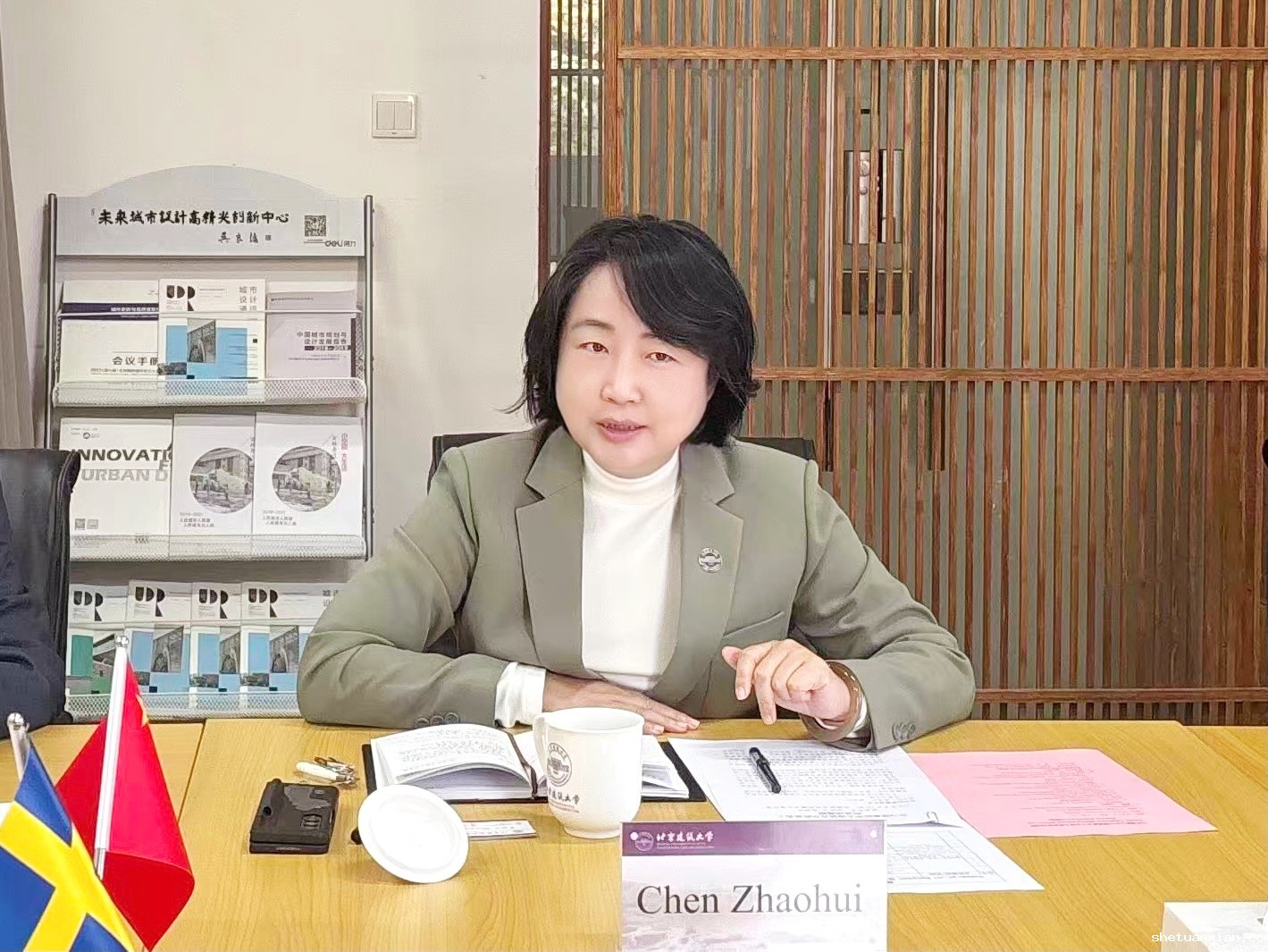 陈朝晖对瑞典驻华大使馆代表团一行表示热烈欢迎。她指出,瑞典高等教育体系素以创新性、开放性和高质量闻名,多所高校在建筑、设计、可持续发展等领域位居国际前沿。她希望以大使馆为桥梁,与瑞典皇家理工学院等优秀高校开展务实合作,共同加入学校发起成立的“一带一路”建筑类大学国际联盟和“鲁班书院”等平台,围绕合作办学、师生交流、科研合作等方向,探索创新路径,为促进中瑞乃至全球相关领域的协作贡献智慧与力量。