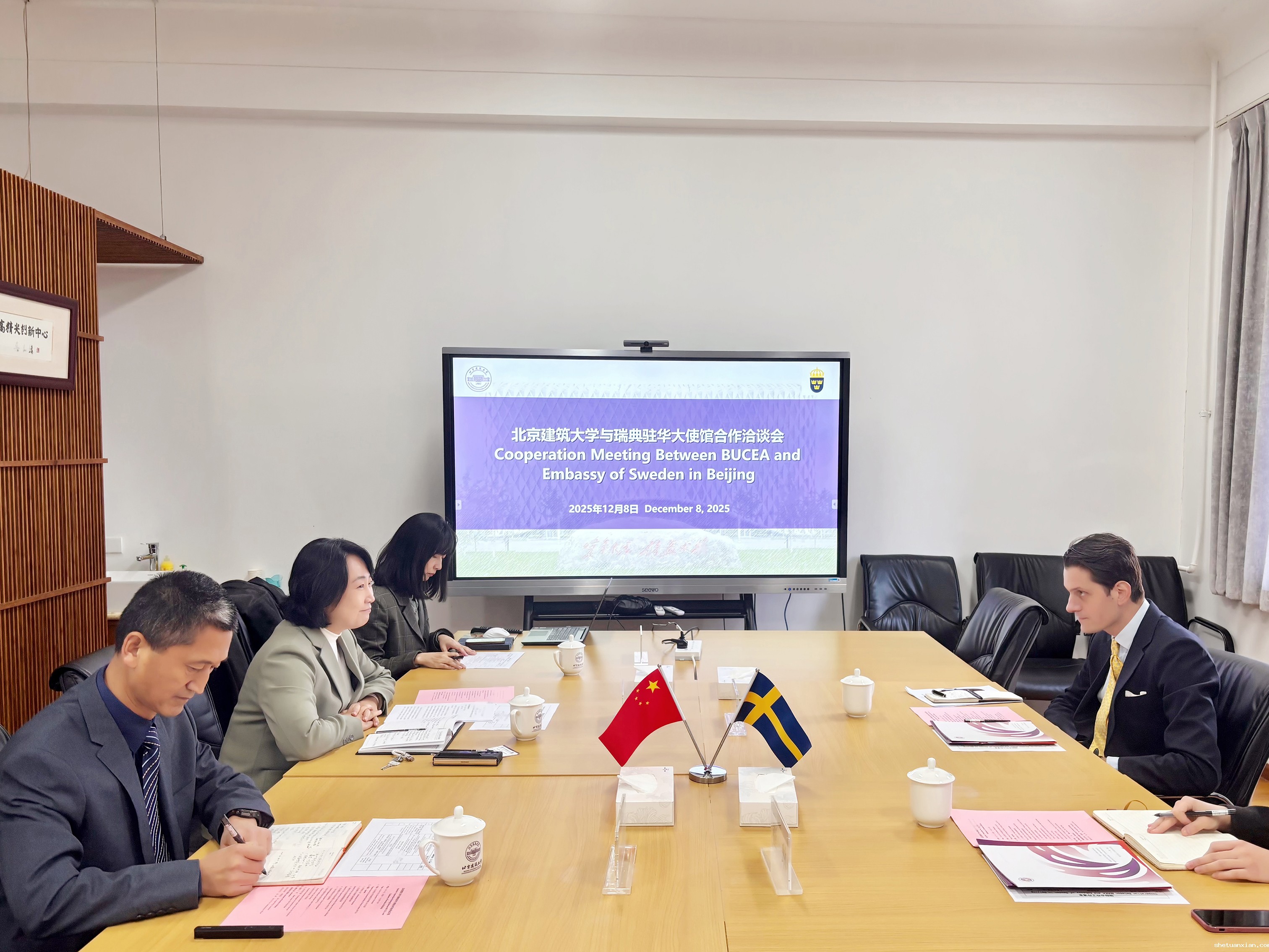 12月8日,瑞典驻华大使馆参赞博傲铠一行访问我校。双方围绕教育合作、科研创新与文化传承等议题展开深入交流。我校对外交流合作处、科学技术发展研究院和北京北建大建筑设计研究院相关负责人参会。