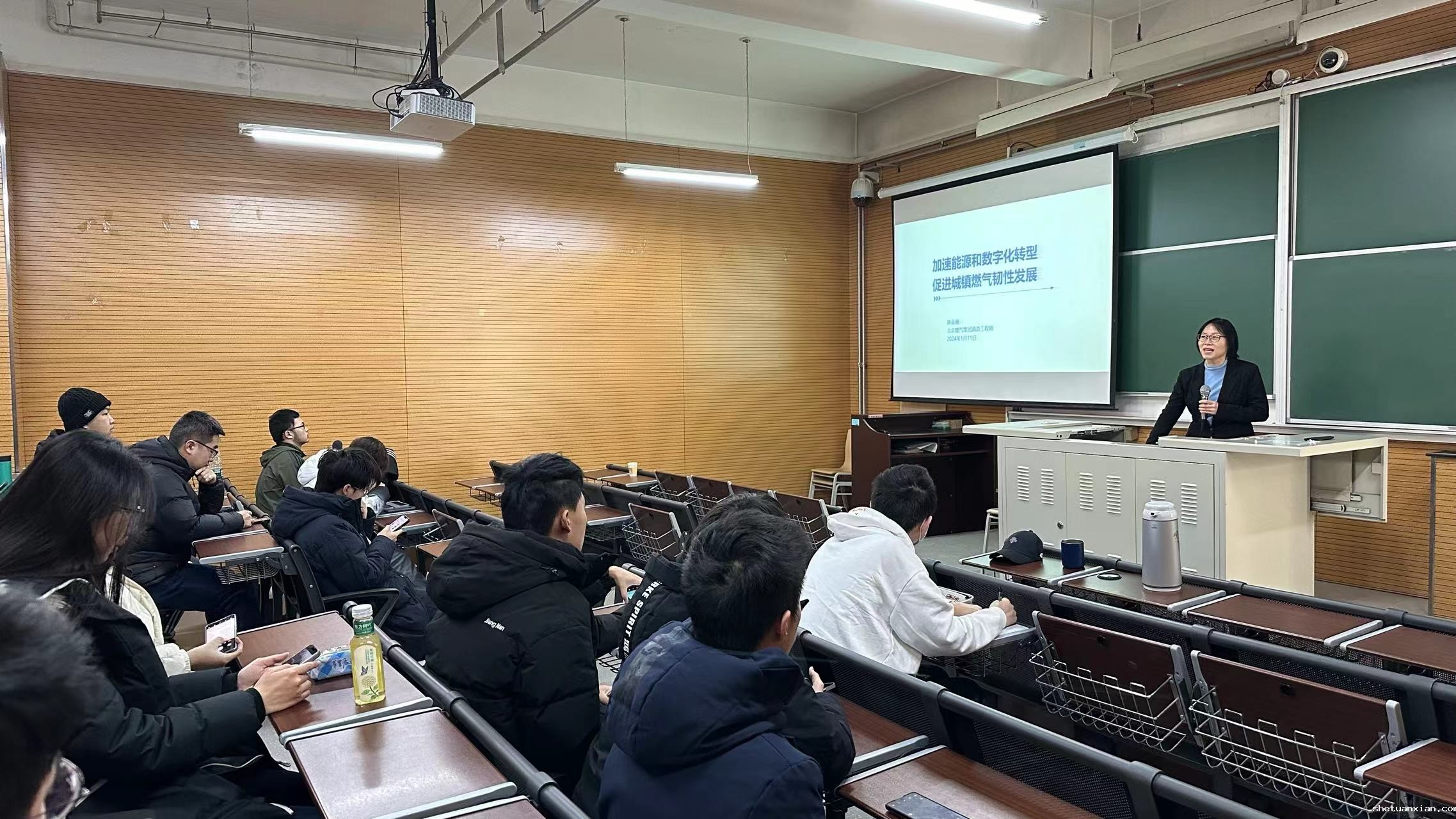 1月15日,燃86级校友、北京市燃气集团有限责任公司原总工程师韩金丽教授级高工,为师生带来“加速数字化转型,促进城镇燃气韧性发展”的主题报告,强调了城镇能源系统的重要性及新形势下数字化转型的迫切性,并介绍了人工智能、无人机、北斗定位等技术在燃气巡检运维和厂站安全防护等方面的应用。