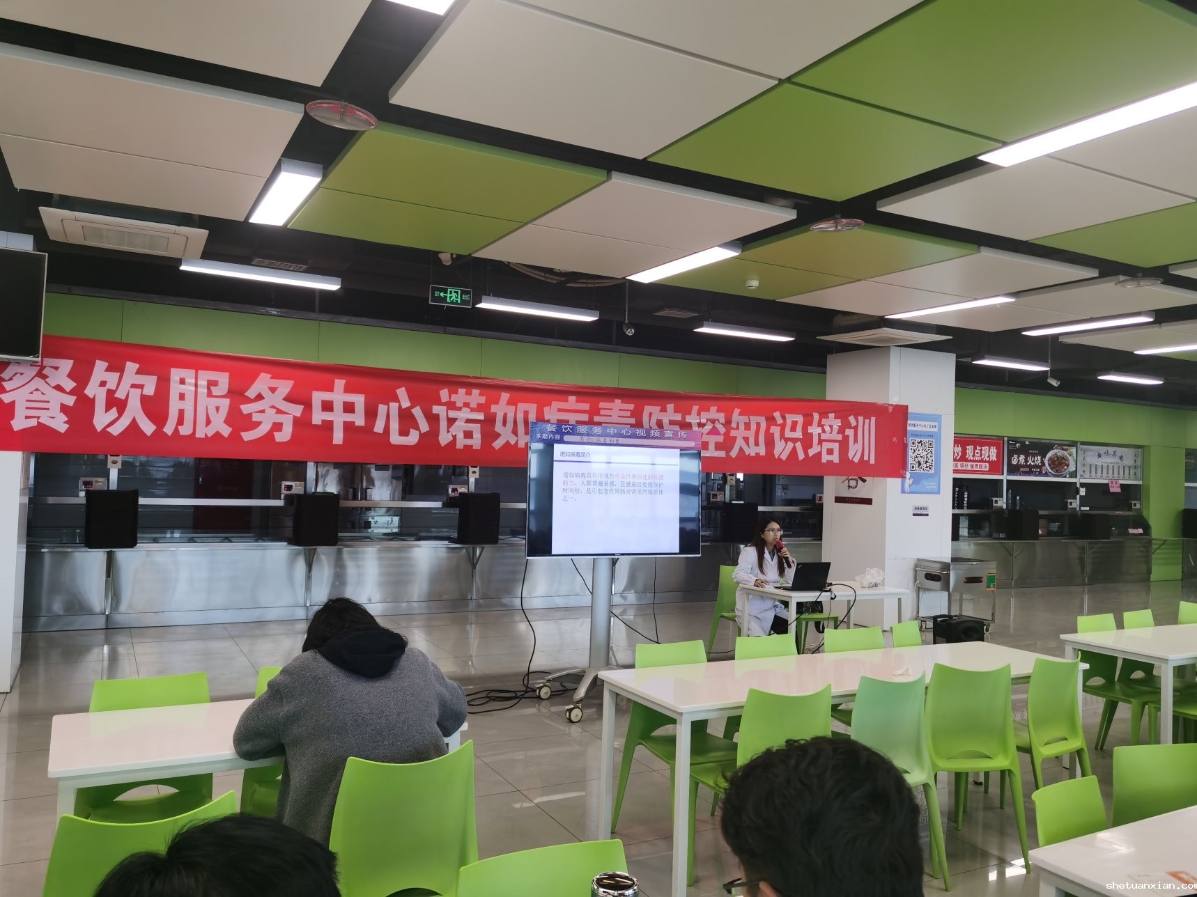 为了切实做好学校诺如病毒防控工作,保障广大师生的饮食安全和身体健康,2024年3月13日,学校医务室分别在两校区面向餐饮服务中心员工开展诺如病毒防控及处置专题培训会。