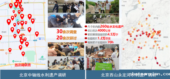 团队十余年系统调研北京水文化遗产,涵盖中轴线及西山永定河水文化。结合“世界水日”等主题日,组织大中小学开展科普讲座、走河等活动,推进水文化宣传。团队获麒麟科学技术奖、“挑战杯”二等奖等多项荣誉,“北京中轴线水文化遗产调研”项目入选全国大学生创新创业年会。活动获北京电视台等媒体报道。过去一年,开展西山永定河水利遗产调研,行程4000公里,整理文献30万字,调研260处遗产点,形成台账、图册等系列成果。