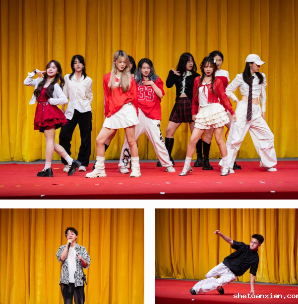 本次文化节专场演出紧密围绕“‘社’彩斑斓 团聚青春”这一主题,节目质量优秀、种类丰富。演出伊始,街舞社用活力四射的流行舞瞬间点燃全场热情,随后,觅音社、街舞社、动漫社等学生社团纷纷登台,为同学们带来节奏动感、舞姿灵动的乐队演出、单人独唱、街舞、爵士舞和荧光棒舞蹈等歌舞类节目,迅速将现场气氛推向高潮。