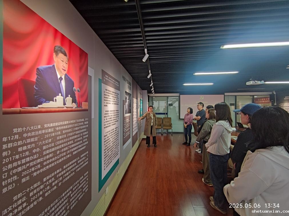 学校纪检监察办公室干部董姝婷带领支部党员参观了学校廉洁文化教育基地,学习了“清风”“警钟”主题展,“清风”集中展示了中华优秀传统文化中的廉洁观念、中国共产党反腐倡廉历史进程和百年校史中的勤廉基因;“警钟”以解读+案例的形式对六大纪律进行介绍,引导党员全面学纪、准确知纪、自觉明纪、严格守纪。通过现场教学,支部党员接受了一场鲜活的廉洁文化教育,也更深刻地理解了开展深入贯彻中央八项规定精神学习教育的重要意义。