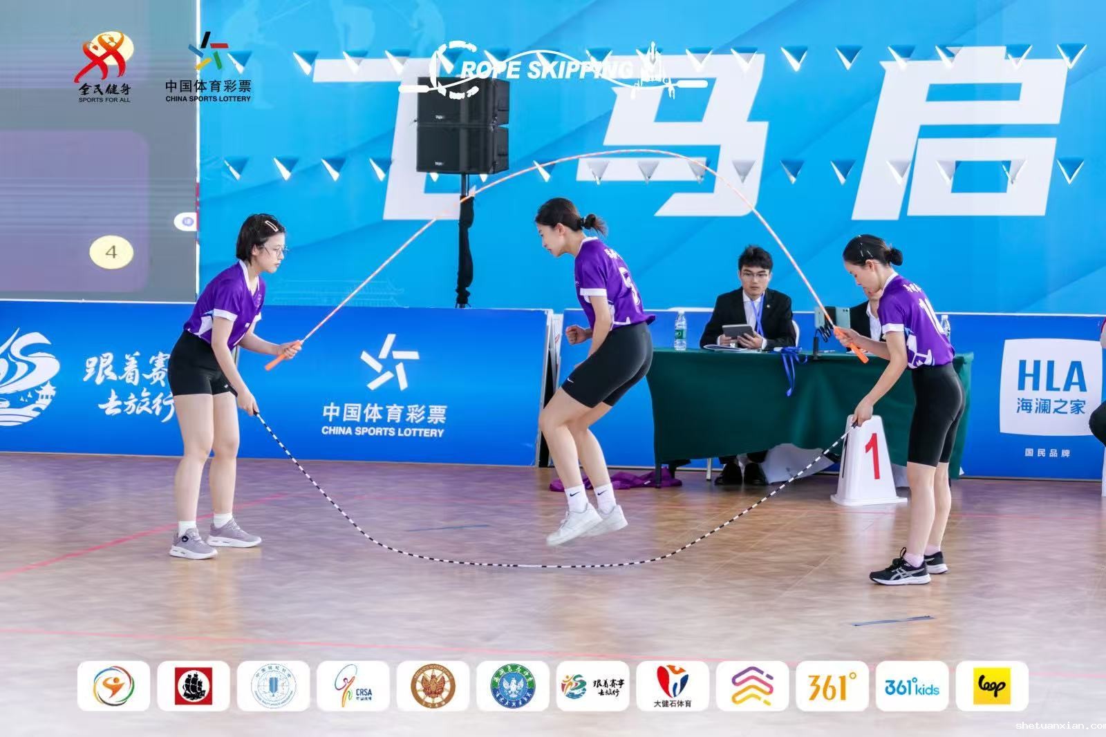由国家体育总局社会体育指导中心、中国毽球协会主办,全国跳绳推广委员会、江阴市文体广电和旅游局、江阴飞马体育管理有限公司承办,上海大健石体育文化传播有限公司协办的“2025年全国跳绳联赛(江苏江阴站)”于2025年5月9日-5月11日在江苏省江阴市飞马体育公园隆重举行。本次比赛旨在为跳绳爱好者搭建竞技平台,培养和选拔国家队后备人才,进一步推动跳绳项目发展,助力体育强国和健康中国建设。赛事设置了计数赛、花样赛、表演赛、规定赛、DDC交互绳大赛、传统特色项目共计6个大项34个小项,吸引了北京、河北、山西、辽宁、上海、江苏、浙江、山东、安徽、江西、广东、贵州、云南、陕西等全国14个省(市)49支队伍800余人参与角逐。