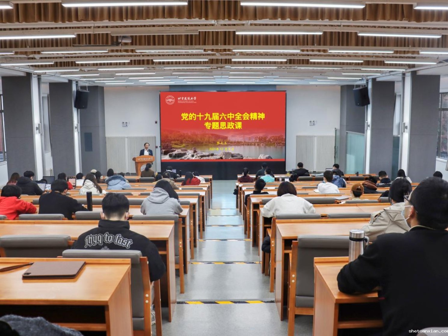 12月8日,校党委副书记、校长张大玉为建筑学院讲授专题思政课,带领2021级研究生深入学习领会党的十九届六中全会精神,引导新生坚定理想信念,提升创新能力,努力成长为有理想、有本领、有担当的未来规划师、设计师、建筑师。活动由建筑学院党委书记何立新主持。