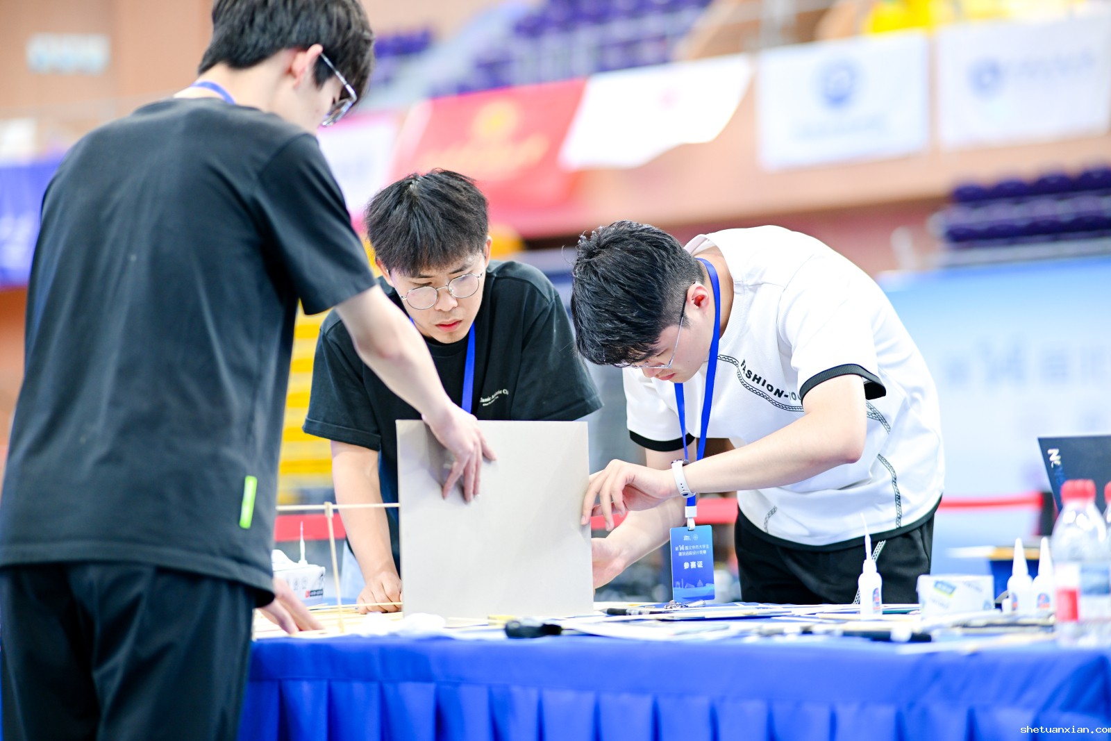 本届竞赛共有三组赛题。A组以“乌篷船模型结构设计与制作”为题,要求参赛者围绕乌篷船的船体结构设计、防水抗撞优化及载重航行测试等展开设计。赛题巧妙融合绍兴乌篷船非遗文化,将传统工艺的智慧与现代建筑技术相结合,不仅考验了各参赛团队的创新思维和工程实践能力,也为传统文化的传承注入了青春活力。来自北京航空航天大学的参赛学生表示,团队在传统乌篷船“轻、巧、稳”的特点基础上,引入有限元仿真优化、三角形稳定框架的量化应用等现代结构思维,赋予了传统工艺新的生命力。
