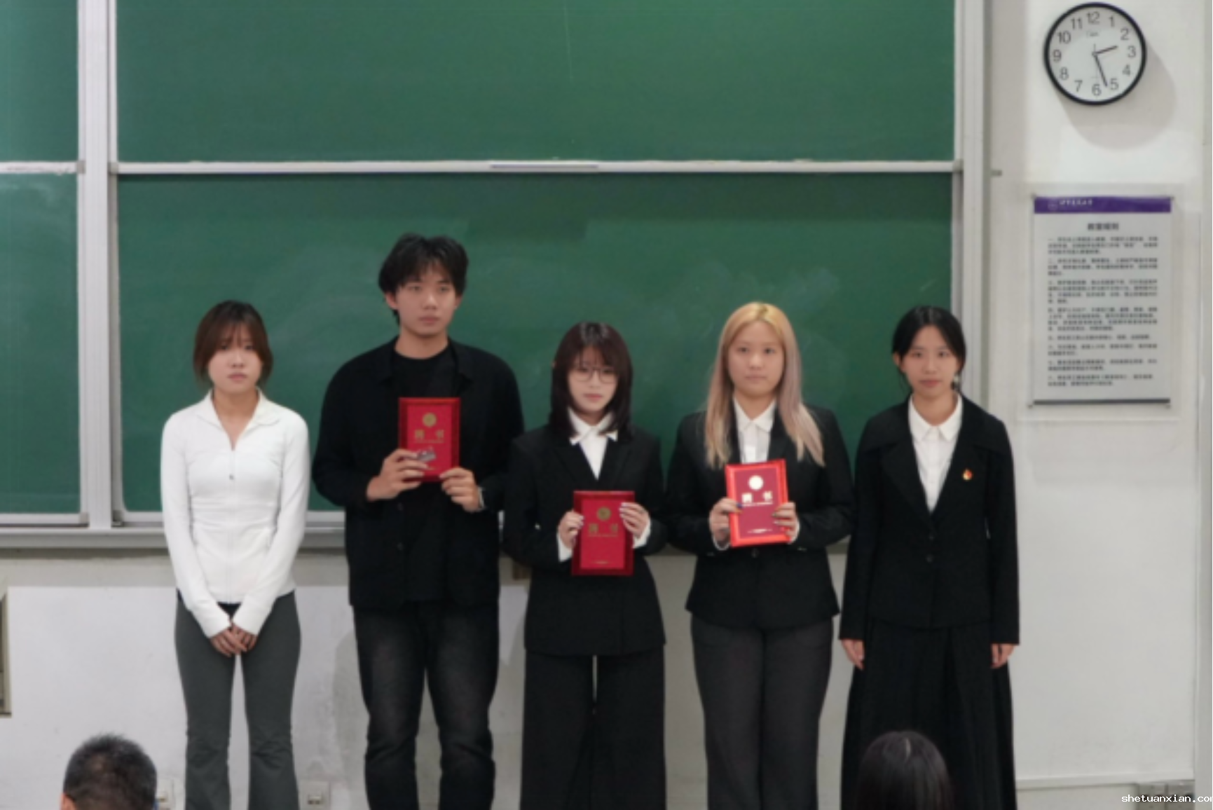 随后,学院团委书记李怡老师为2024-2025 学年学院优秀学生骨干代表颁奖,并宣读了2025-2026学年团学组织干部聘任名单,同时向新任主席团成员颁发了聘书与胸牌。